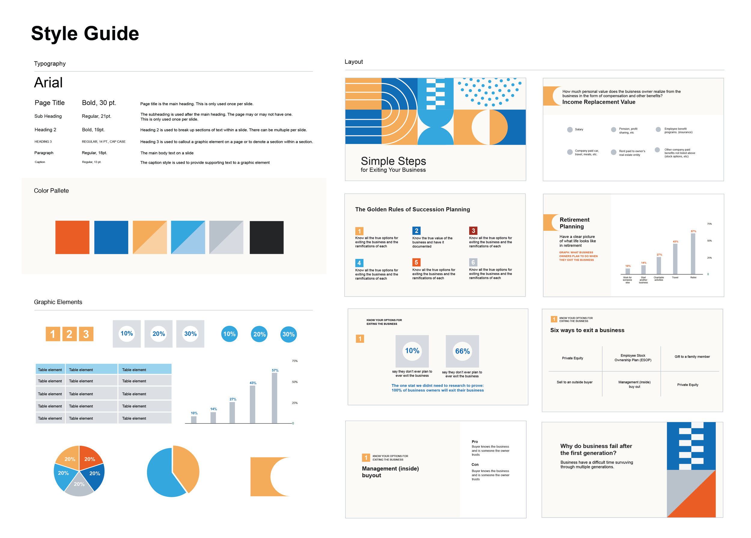 Project: I developed a set of brand standards for Simple Steps, including layout examples. I paid careful attention to legibility, layout, color choice, and hierarchy of type and information. This allowed me to share the workload with other designers while ensuring consistency across the board. Below is a sample of some of the final slides. In total, 13 final presentations for different audiences were delivered.